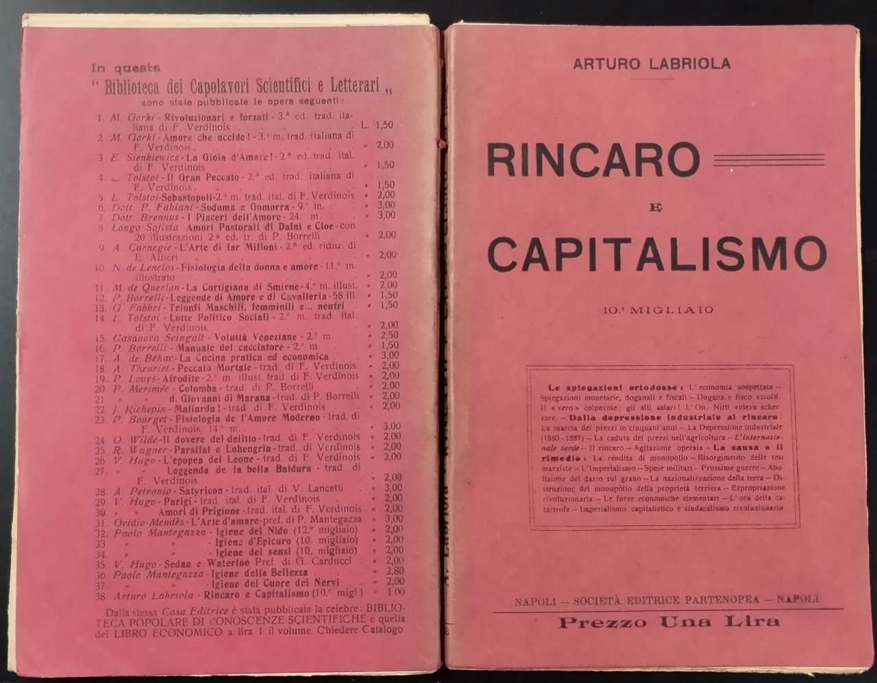 RINCARO E CAPITALISM0 di Arturo Labriola 1911 Partenopea Libro lezione universit | Libri antichi e moderni |
