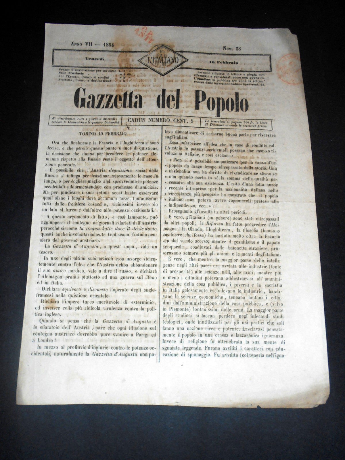 Risorgimento Cavour Torino - Giornale Gazzetta del Popolo n° 38 del 1854 | Libri antichi e moderni |