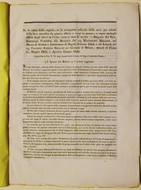 Risposte…su la rugiada, su la scomparsa della neve, ecc., ad articoli dei signori Macedonio Melloni ed Angelo Bellani. | Libri antichi e moderni | Fusinieri Ambrogio.