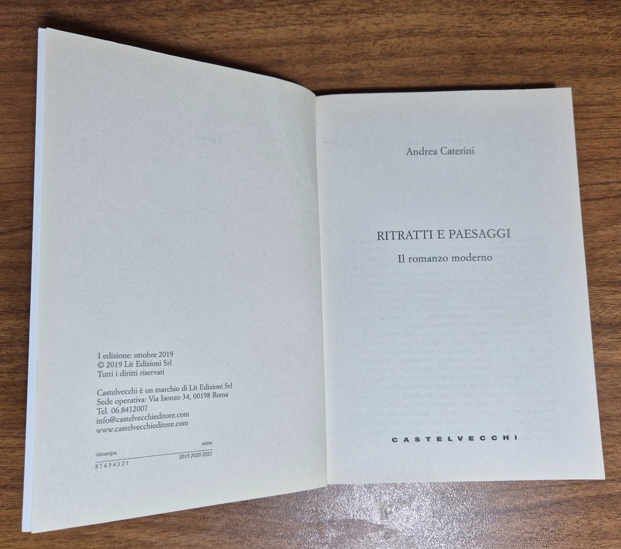 RITRATTI E PAESAGGI Il romanzo moderno di Andrea Caterini 2019 Castelvecchi Libr | Libri antichi e moderni |