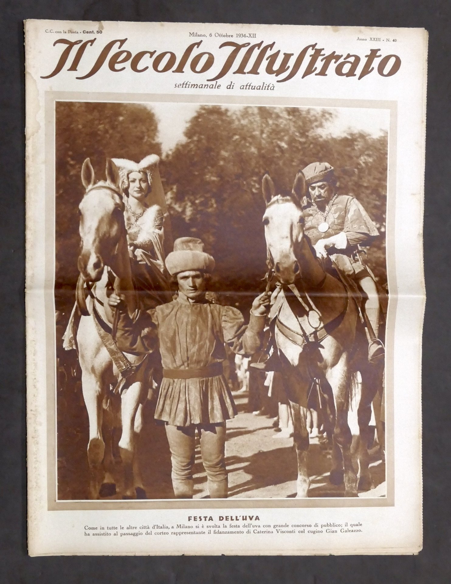 Rivista Attualità - Il Secolo illustrato N. 40 - 1934 - Festa dell'uva a Milano Pag. 16 con illustrazioni. Copertina morbida - Testo in italiano. Condizioni molto buone. Â
