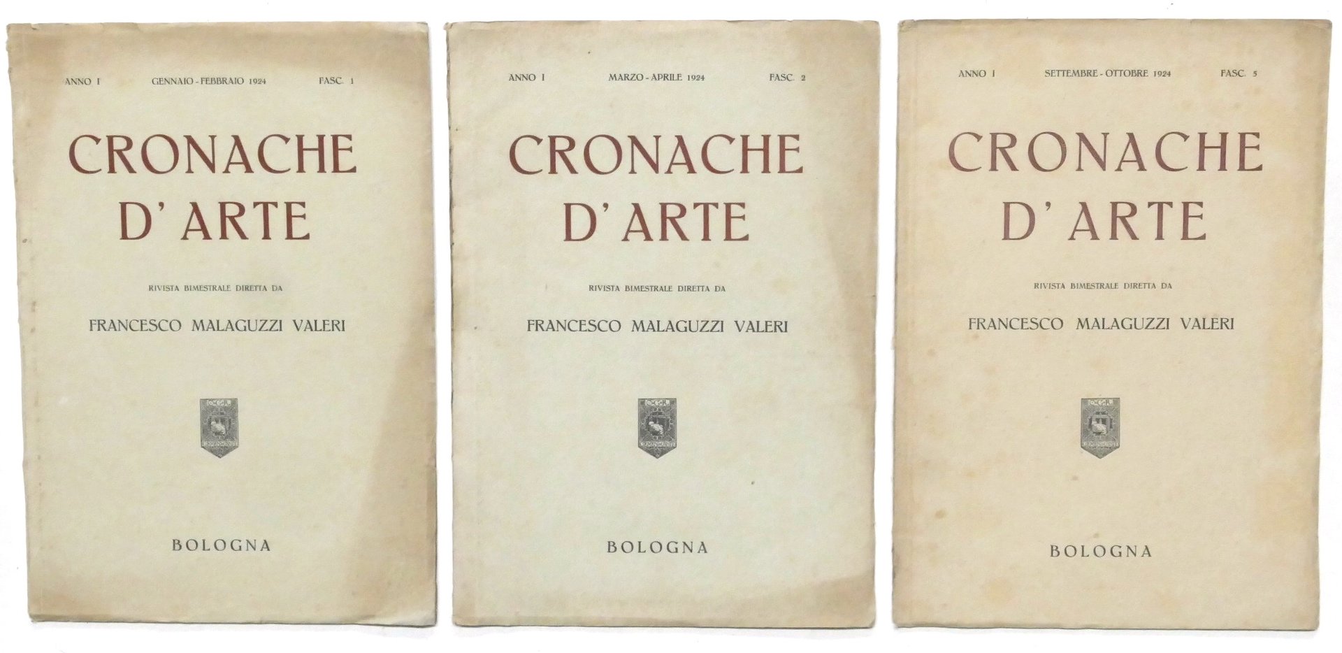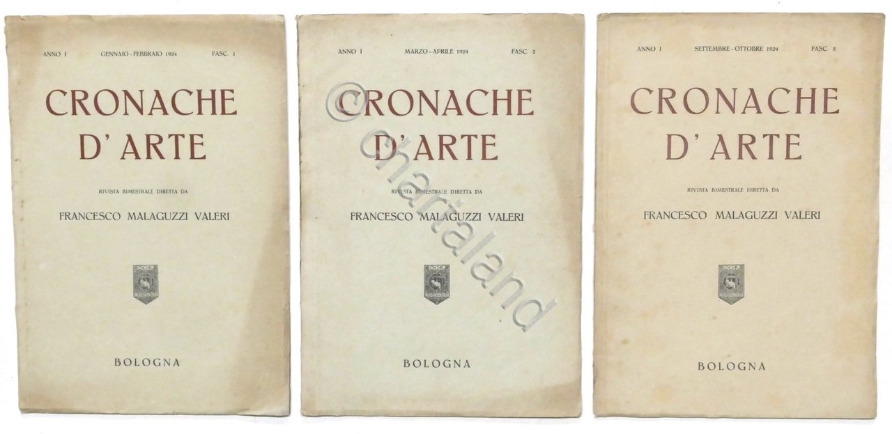 Cronache d'Arte - Rivista bimestrale diretta da Francesco Malaguzzi Valeri - Anno I - 1924 Fascicoli n. 1 - n. 2 - n. 5 184 pagine complessive con illustrazioni. Copertina morbida - Testo in italiano. Buone condizioni generali.