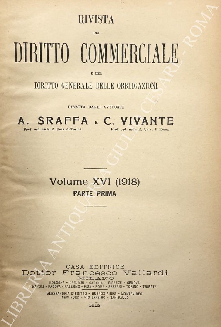 Rivista del Diritto Commerciale e del diritto generale delle obbligazioni. Diretta da A. Sraffa e C. Vivante. Vol. XVI - 1918 | Libri antichi e moderni | Autori Vari