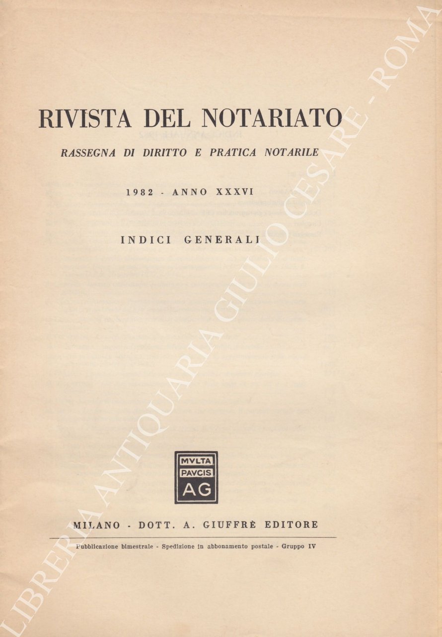 Rivista del Notariato. Rassegna di diritto e pratica notarile. Anno XXXVI - 1982 | Libri antichi e moderni | Autori Vari