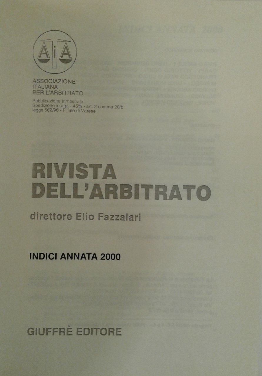 Rivista dell'arbitrato. Diretta da Elio Fazzalari. Annata X - 2000