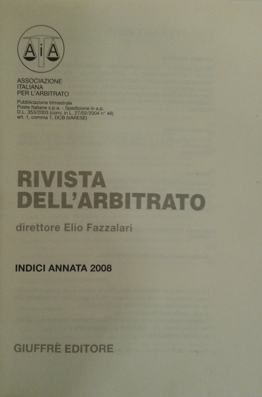 Rivista dell'arbitrato. Diretta da Elio Fazzalari. Annata XVIII - 2008 | Libri antichi e moderni | Autori Vari
