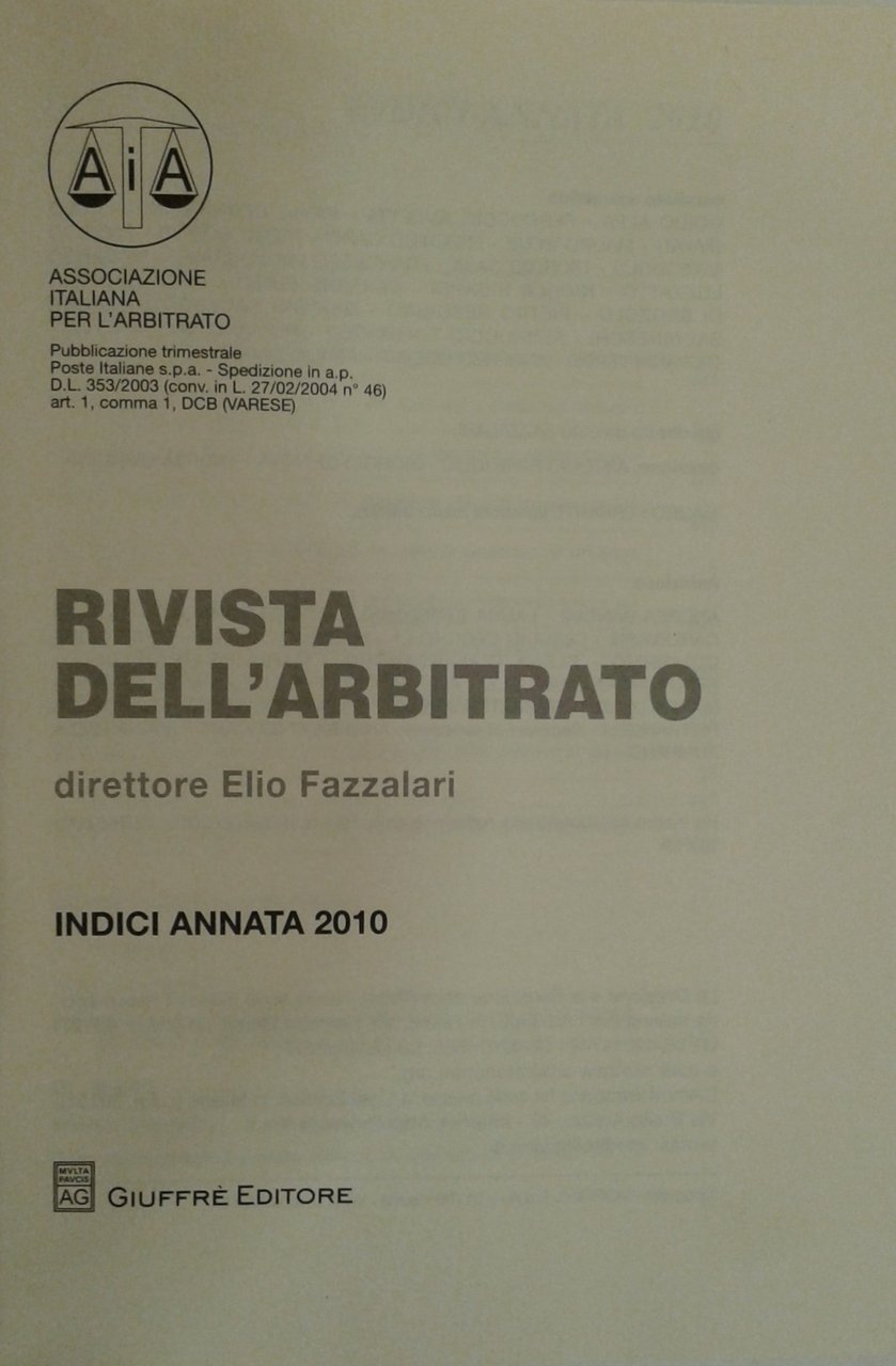 Rivista dell'arbitrato. Diretta da Elio Fazzalari. Annata XX - 2010 | Libri antichi e moderni | Autori Vari