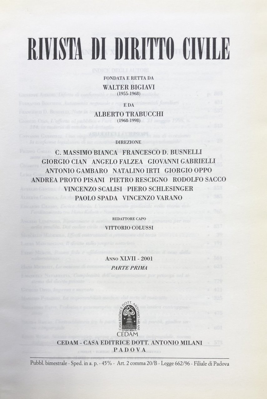 Rivista di diritto civile. Anno XLVII - 2001