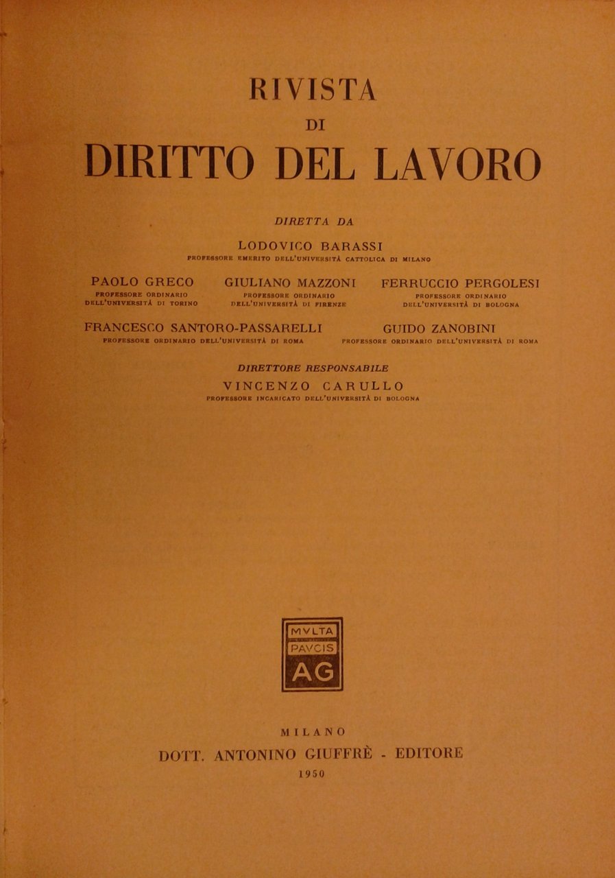 Rivista di diritto del lavoro. Anno I - 1949 | Libri antichi e moderni | Autori Vari