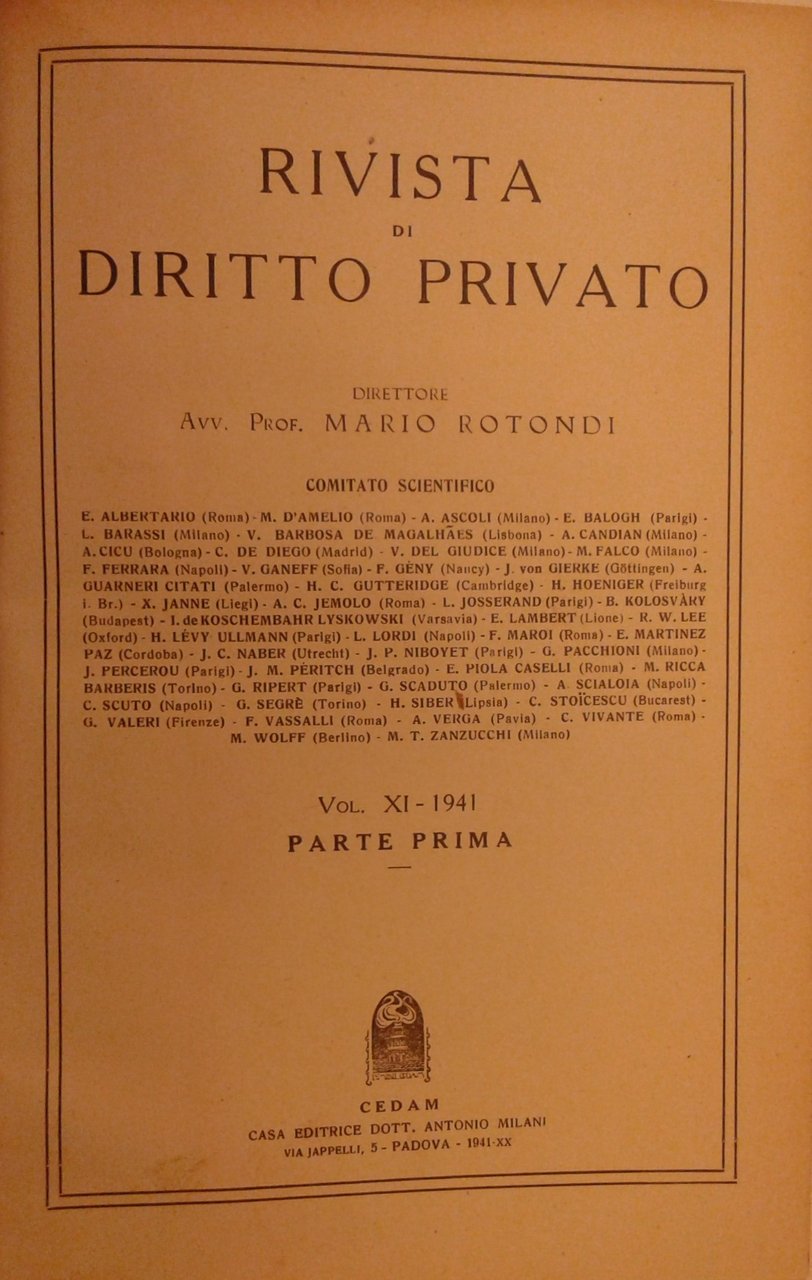 Rivista di diritto privato. Diretta da Mario Rotondi. Vol. XI - 1941 | Libri antichi e moderni | Autori Vari