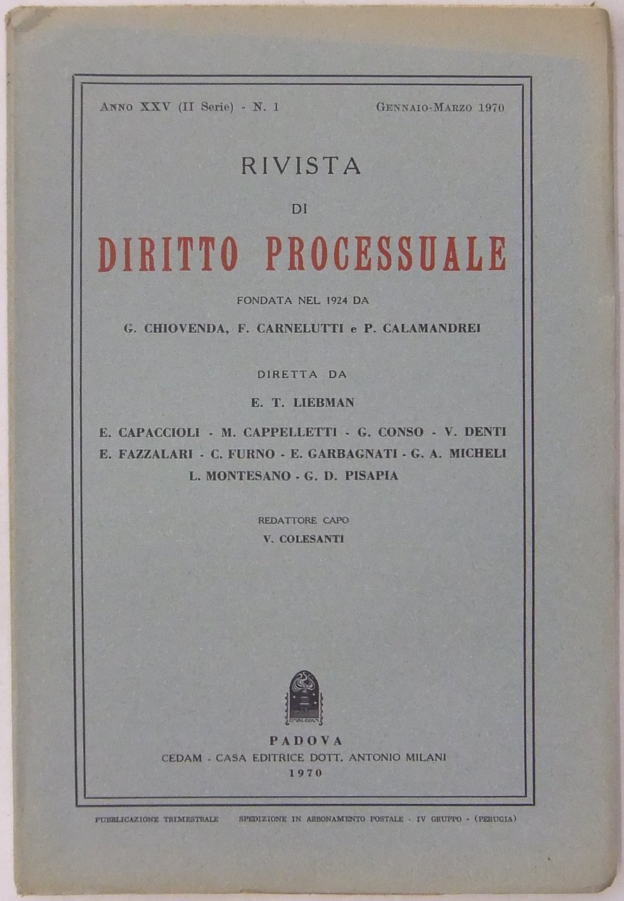 Rivista di Diritto Processuale. Annata 1970. Diretta da: Francesco Carnelutti, Giuseppe Chiovenda, Piero Calamandrei, Enrico Tullio Liebman. Anno XXV (Seconda Serie)