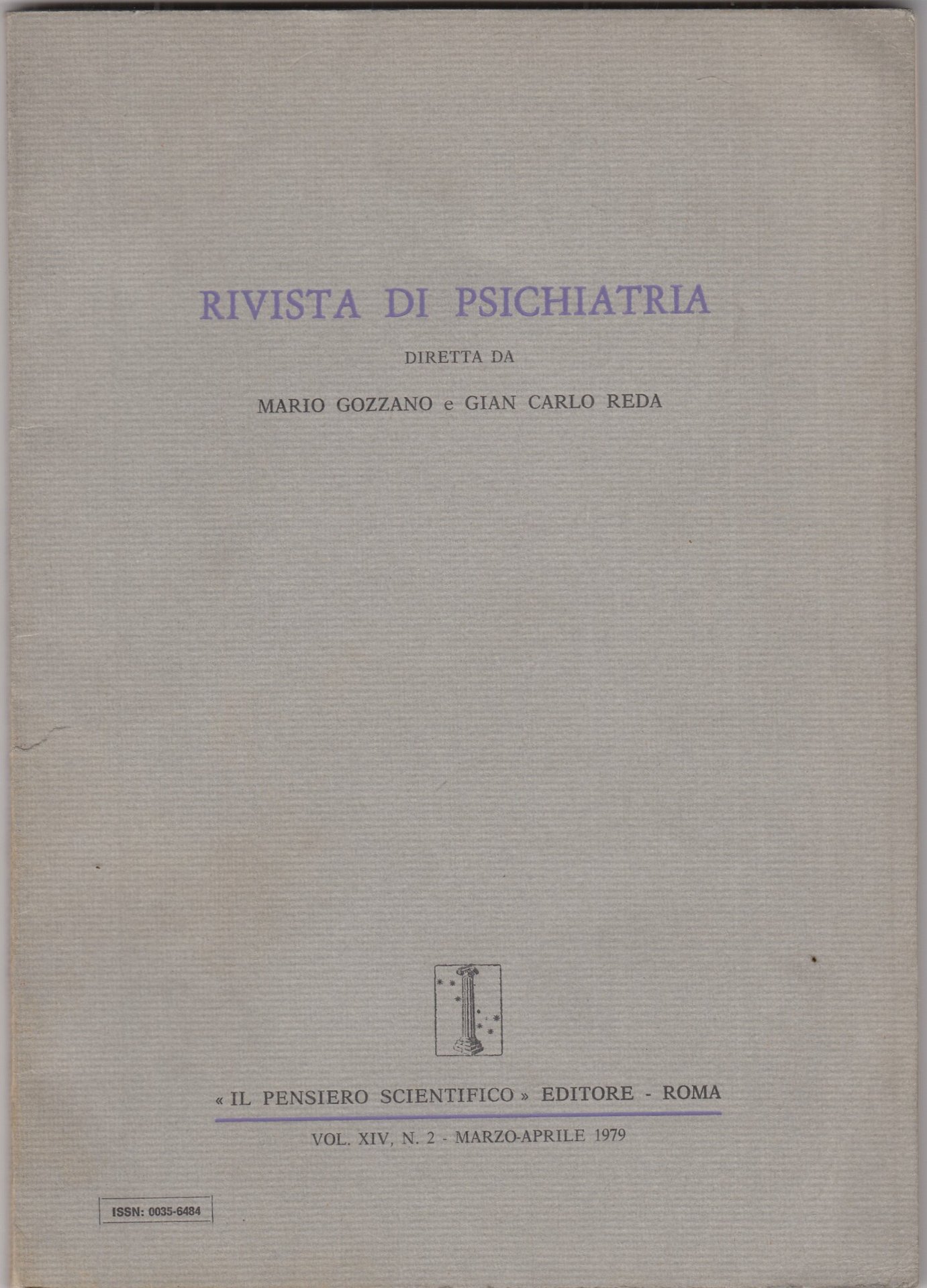 Rivista di psichiatria.Vol XIV, N 2 Marzo-Aprile 1979 | Libri antichi e moderni | Gozzano- Reda, ,Gozzano- Reda