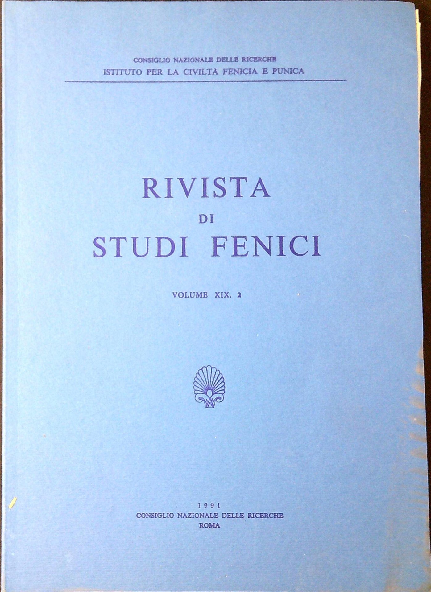 Rivista di studi fenici Volume XIX, 2 1991. Roma, Consiglio nazionale delle ricerche 1991, 276 p.; 28 cm (71457)