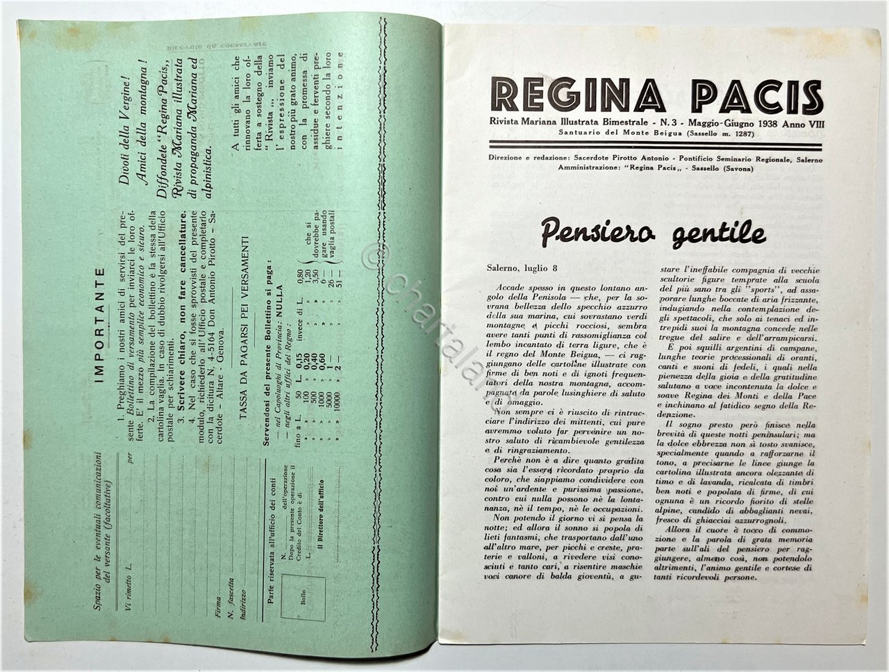 Rivista Mariana, Santuario del M. Beigua (Sassello) - Regina Pacis N. 3 - 1938 | Libri antichi e moderni |