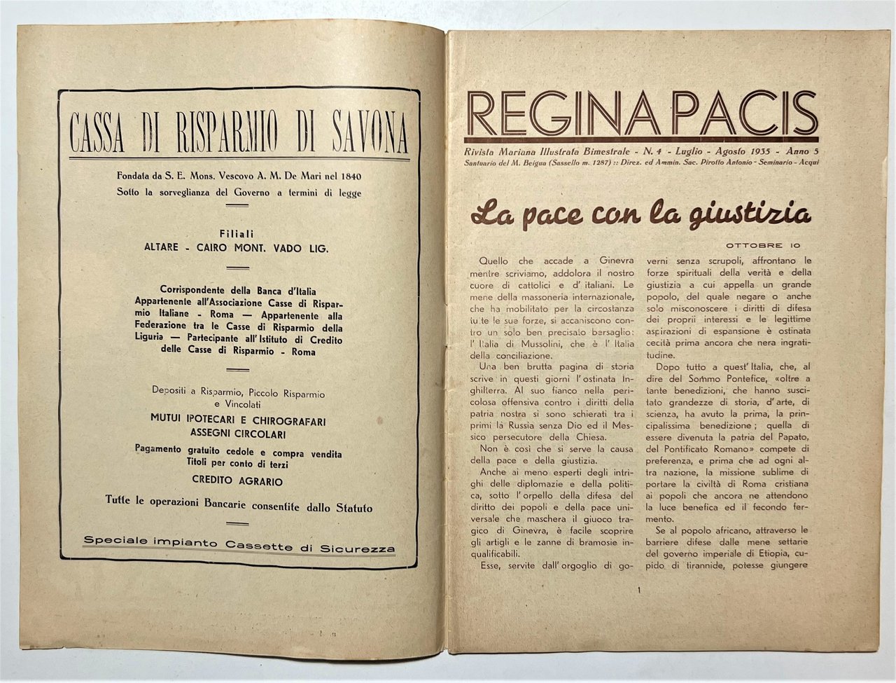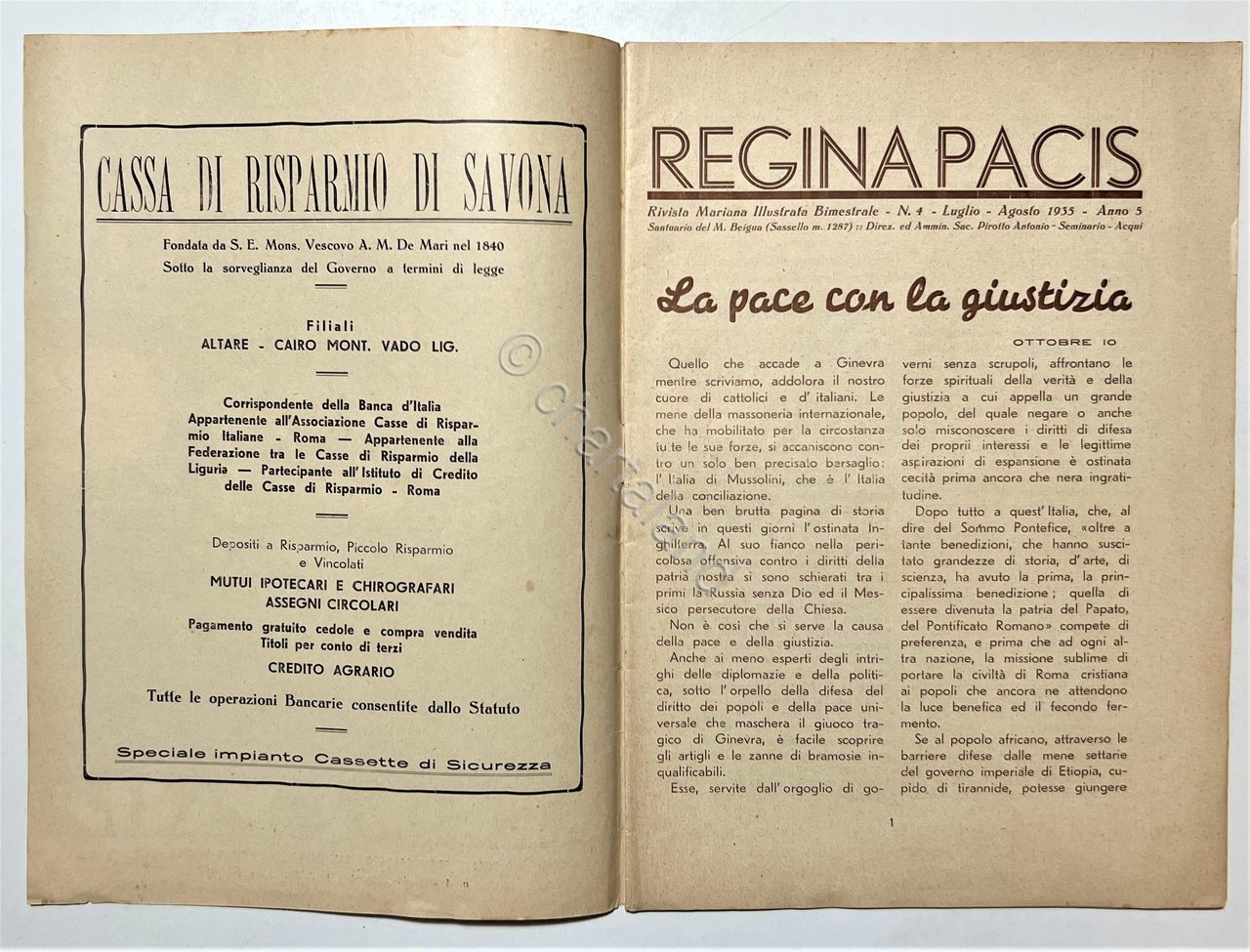 Rivista Mariana, Santuario del M. Beigua (Sassello) - Regina Pacis N. 4 - 1935 | Libri antichi e moderni |
