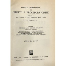 Rivista trimestrale di diritto e procedura civile. Fondata da: A. Cicu e E. Redenti. Diretta da: G. Auletta, E. Bassanelli, F. Carpi, F. Galgano, M. Giorgianni, G.F. Mancini, L. Mengoni, U. Romagnoli, G. Santini, F. Santoro Passarelli. Anno XLI - 1987 | Libri antichi e moderni | Auletta G. - Cicu A. - Galgano F. - Giorgianni M. - Mengoni L. -, Redenti E. - Santoro Passarelli F. Et Alii