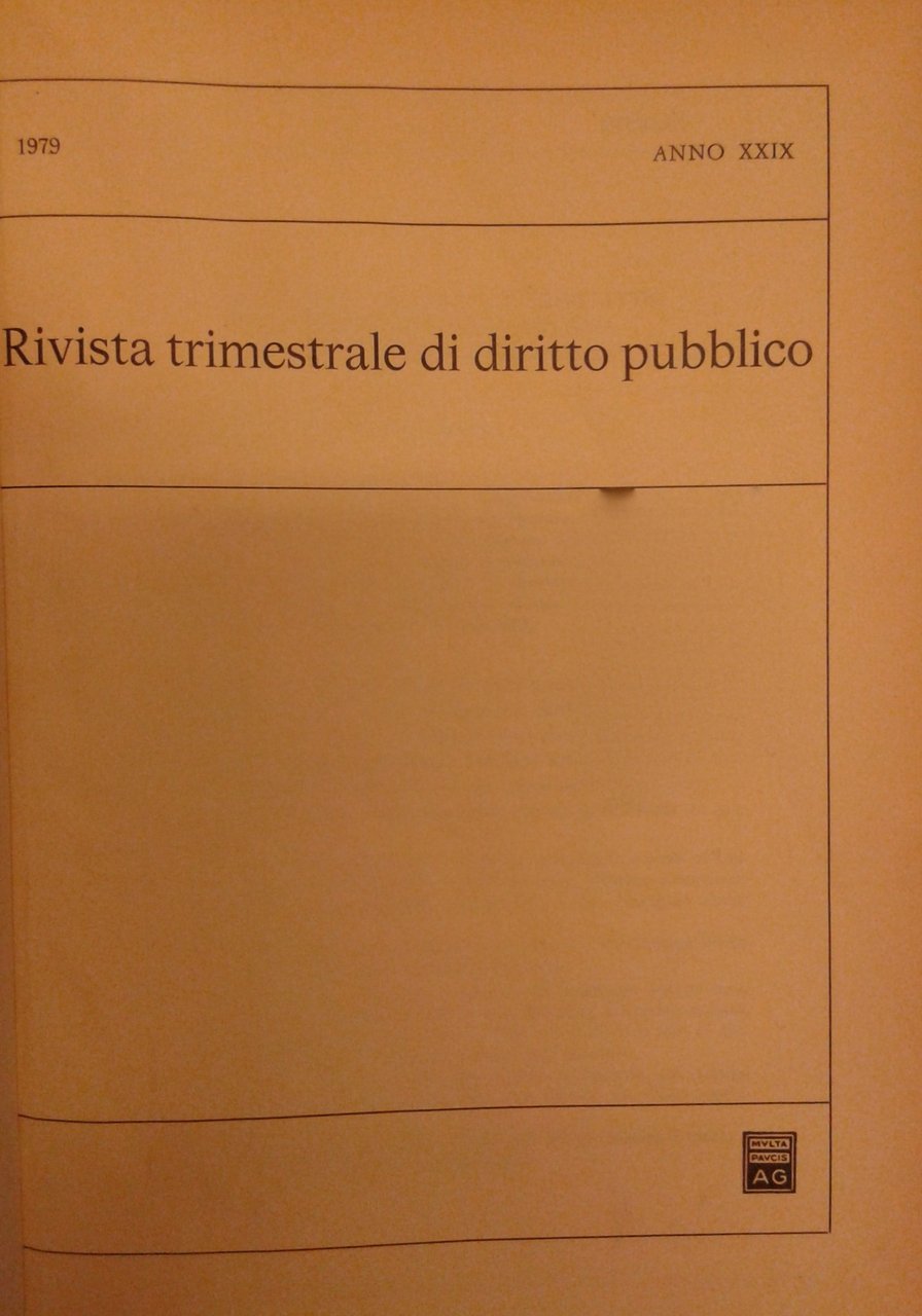Rivista trimestrale di diritto pubblico. Fondata da Guido Zanobini. Diretta da Giovanni Miele e Massimo Severo Giannini. Anno XXIX - 1979