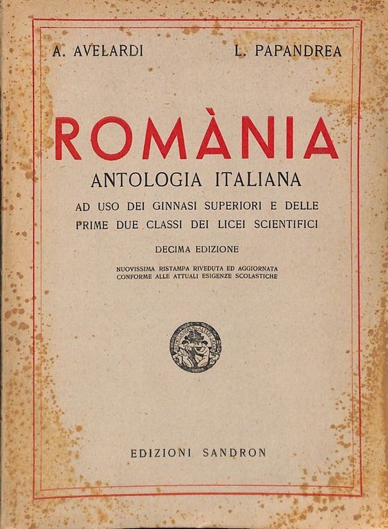 Romània. Antologia italiana ad uso dei Ginnasi superiori e delle prime due clacci dei Licei scientifici | Libri antichi e moderni | Avelardi A., Papandrea L.