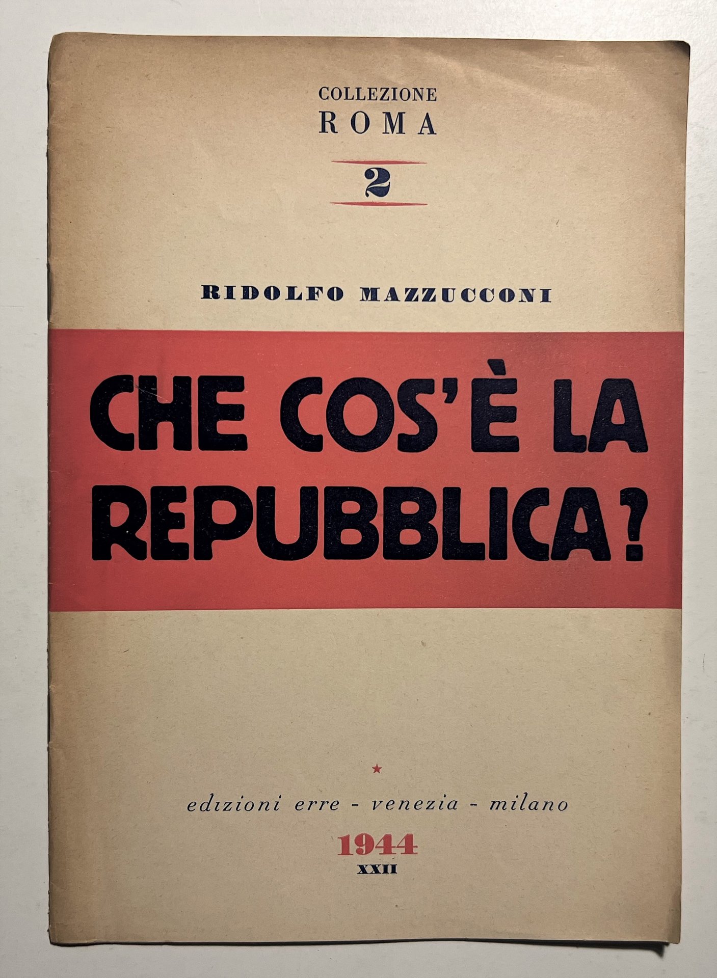 RSI - R. Mazzucconi - Che cos'è la Repubblica? - ed. 1944 Testo in lingua italiana. Pagine 19 Copertina morbida. Condizioni molto buone.