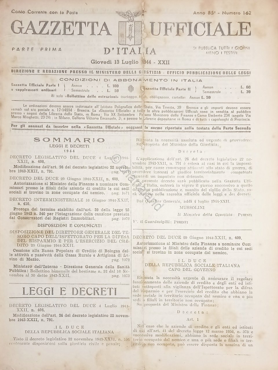 RSI Gazzetta Ufficiale d'Italia N. 162 - 1944