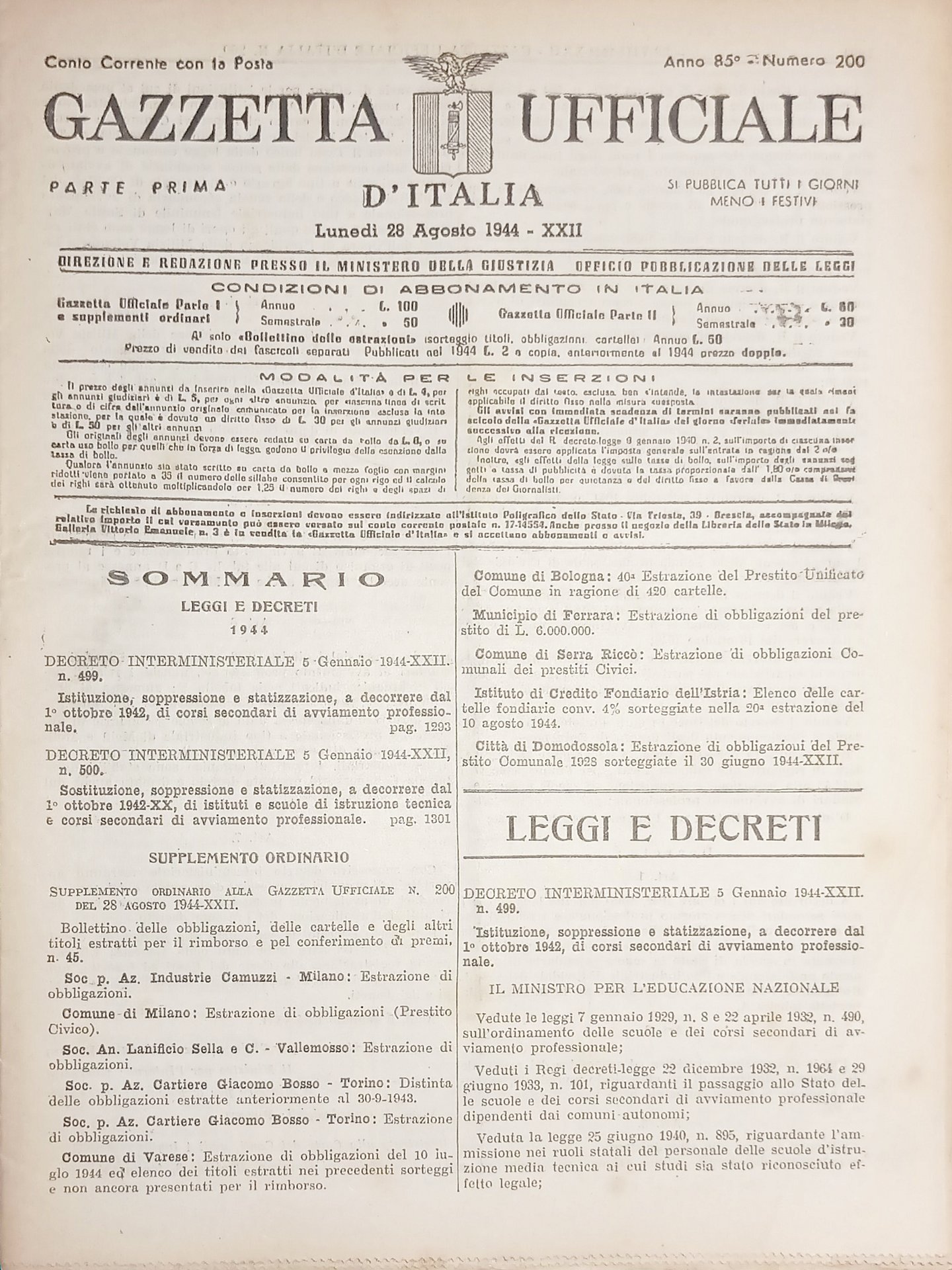 RSI Gazzetta Ufficiale d'Italia N. 200 - 1944