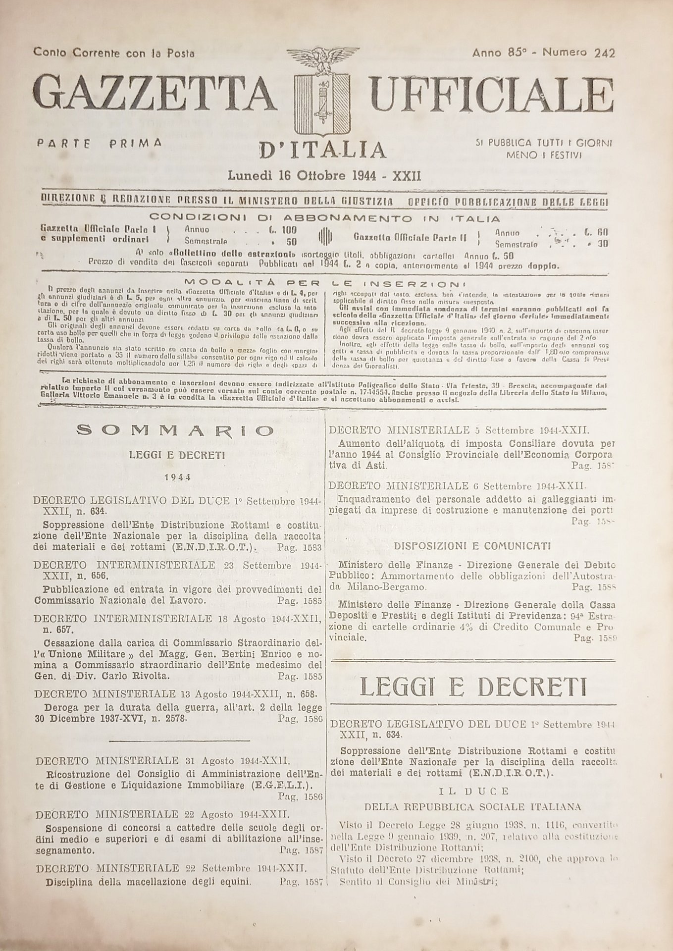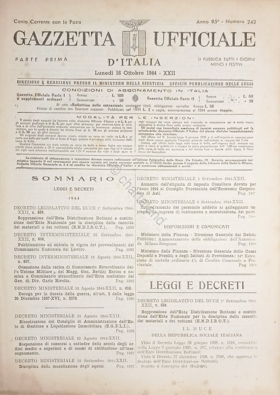 RSI Gazzetta Ufficiale d'Italia N. 242 - 1944