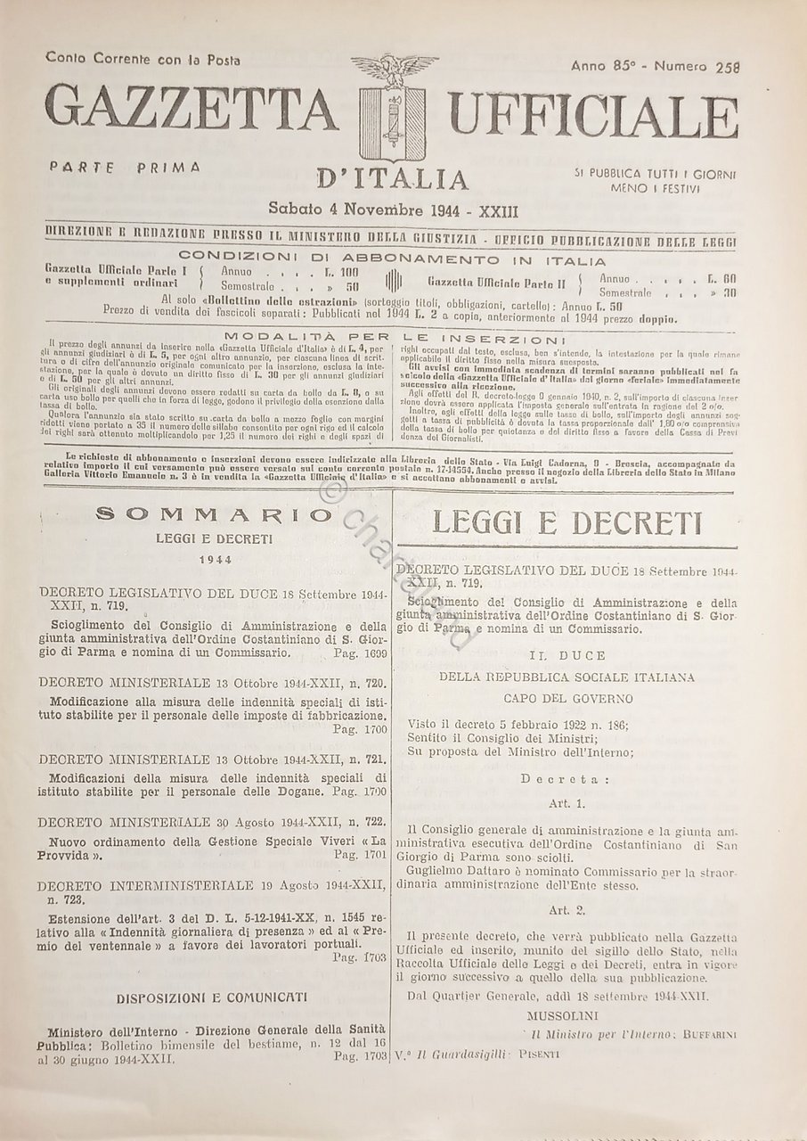 RSI Gazzetta Ufficiale d'Italia N. 258 - 1944