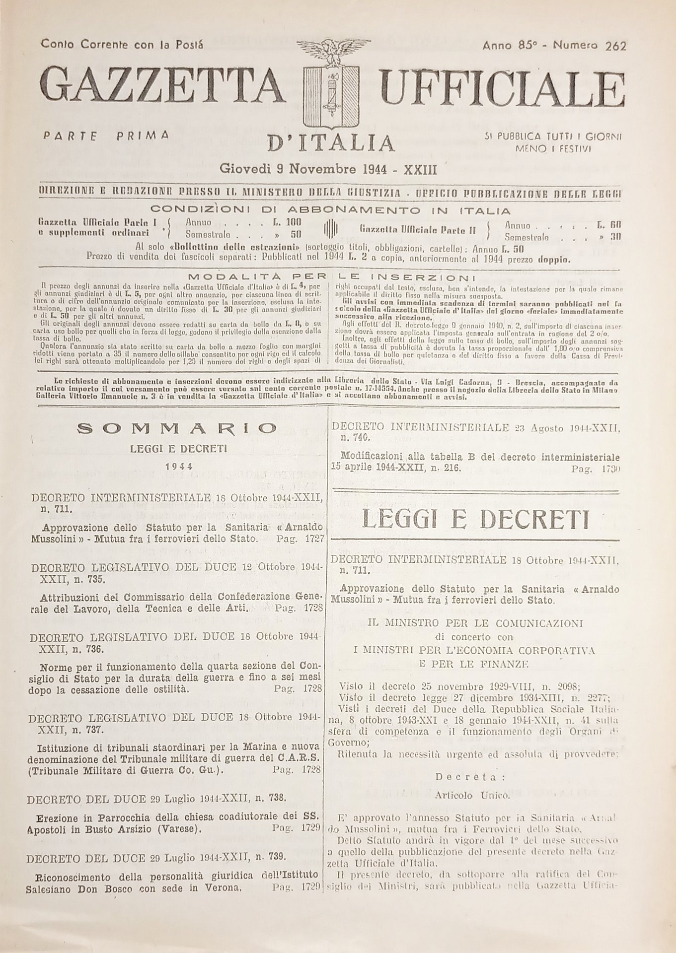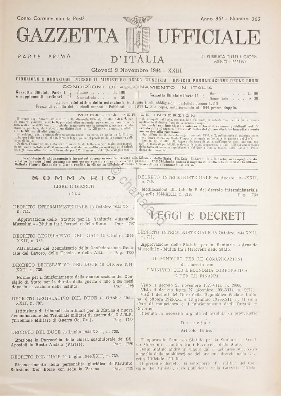 RSI Gazzetta Ufficiale d'Italia N. 262 - 1944