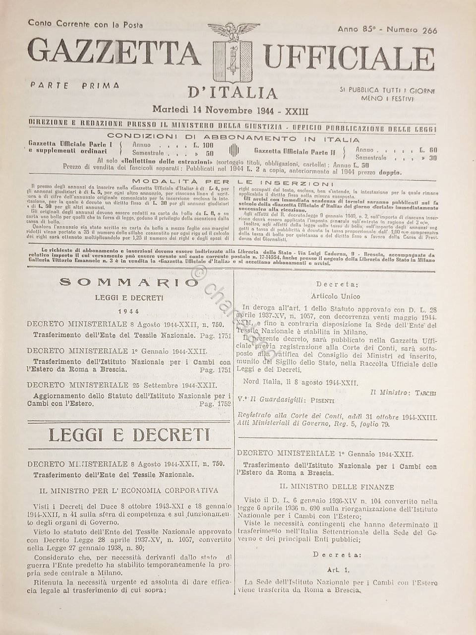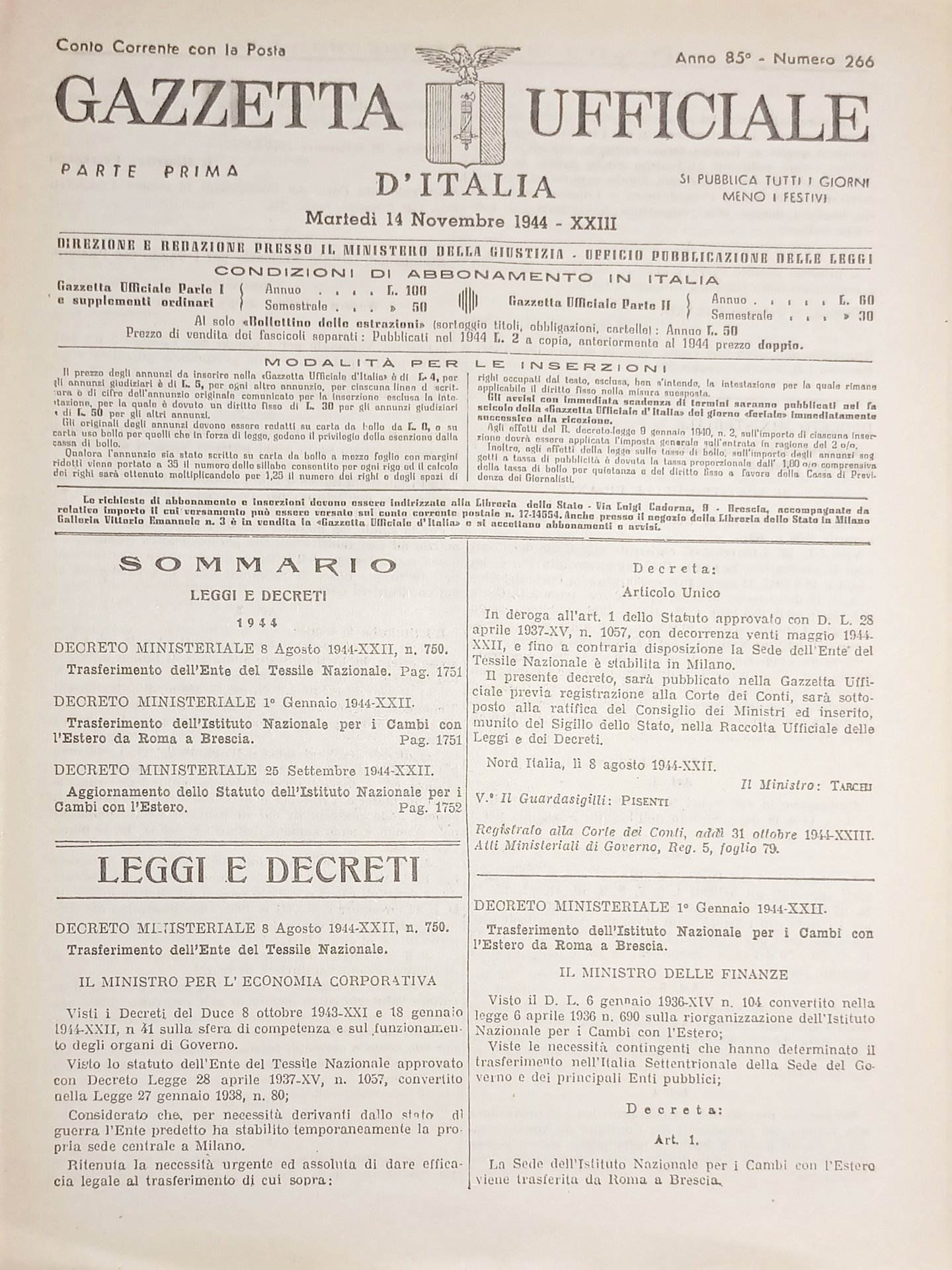 RSI Gazzetta Ufficiale d'Italia N. 266 - 1944