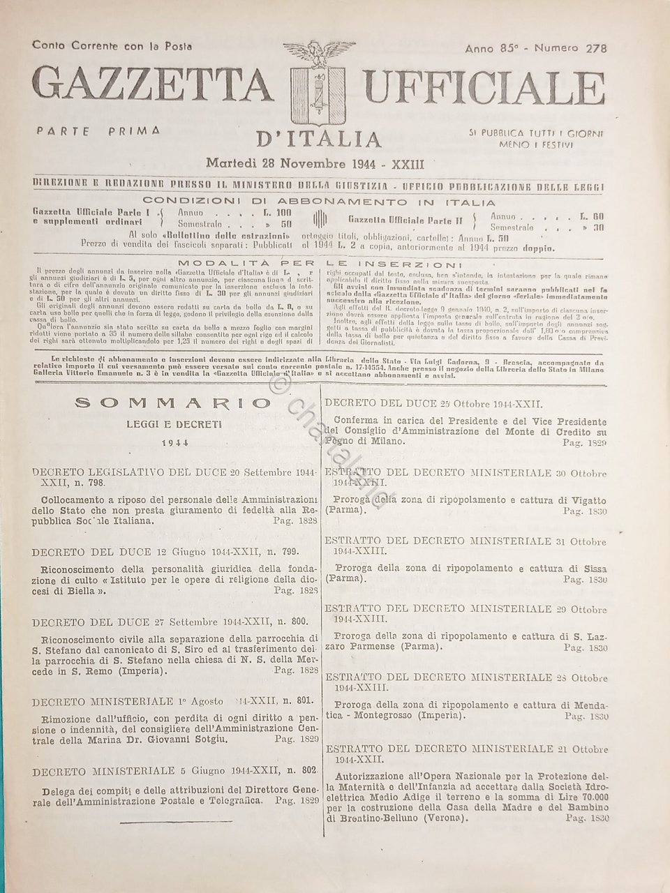 RSI Gazzetta Ufficiale d'Italia N. 278 - 1944