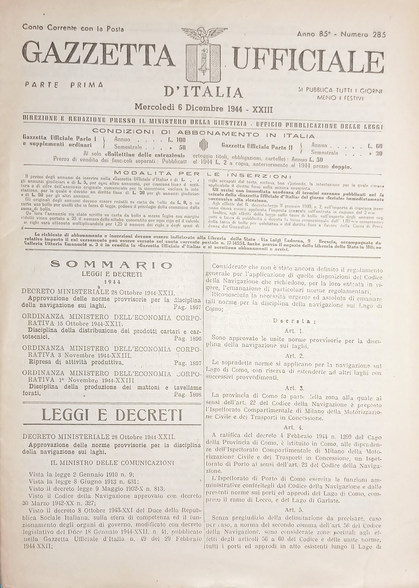 RSI Gazzetta Ufficiale d'Italia N. 285 - 1944