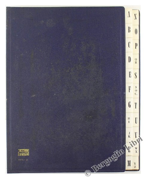 (Codice CW/2704) Volume di cm 33,6x27 formato da pagine in cartoncino grigio, margine esterno a rubrica con linguette bianche e caratteri neri. Copertina originale in tela, dorso a soffietto (lo spessore del volume può aumentare fino a cm 20 circa). Buono stato, mai usato. ~~~ SPEDIZIONE IN ITALIA SEMPRE TRACCIATA