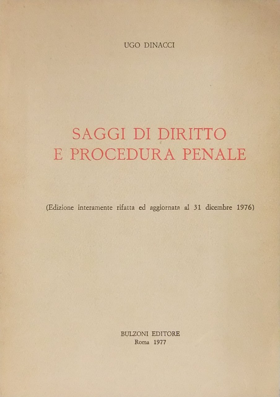 Saggi di diritto e procedura penale. (Edizione interamente rifatta ed aggiornata al 31 dicembre 1976) | Libri antichi e moderni | Dinacci Ugo