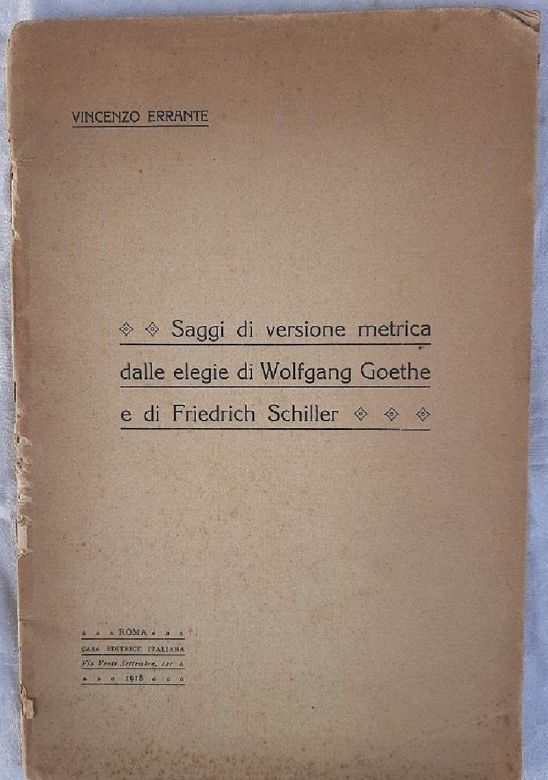 SAGGI DI VERSIONE METRICA DALLE ELEGIE DI WOLFGANG GOETHE E DI FRIEDRICH SCHILLER( 1918) | Libri antichi e moderni | Errante Vincenzo