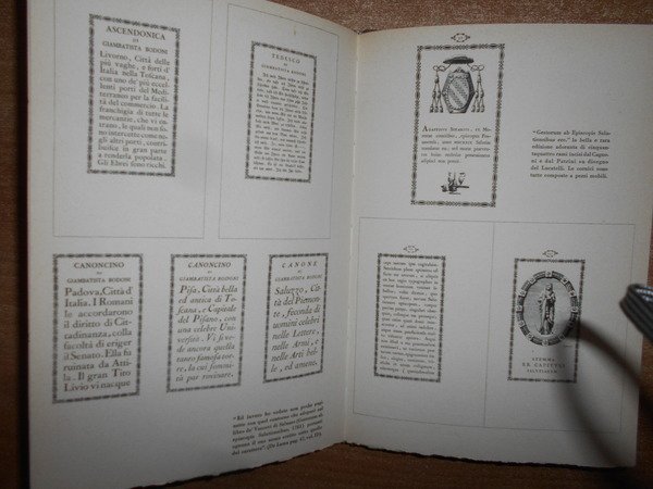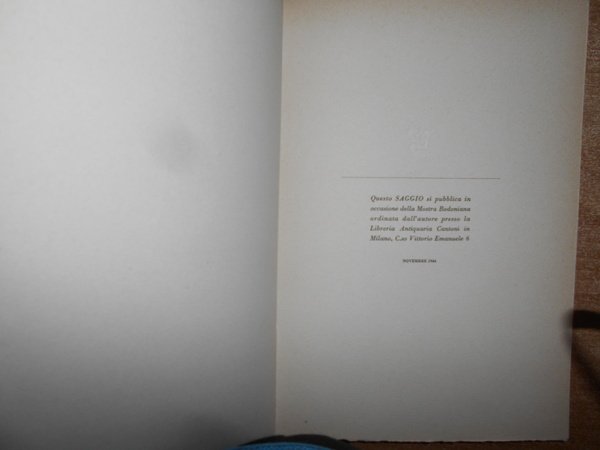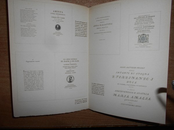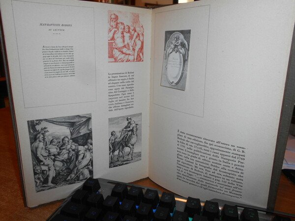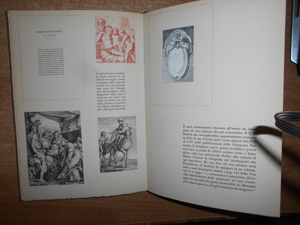 A cura di Giampiero Giani. Milano, Edizioni della Conchiglia, 1946. Saggio di Bibliografia Bodoniana. In-8°, tela con titolo al dorso e fregio in oro sul piano anteriore. (iv), 47 pp. con numerose illustrazioni anche a colori (alcune applicate) fuori testo. Ottimo esemplare n° 214. Uff. B - I - 2