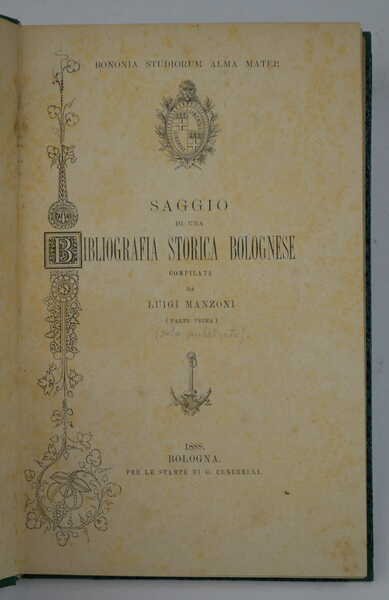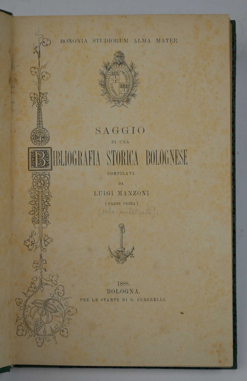 Saggio di una bibliografia storica bolognese. Parte prima. | Libri antichi e moderni | Manzoni Luigi.