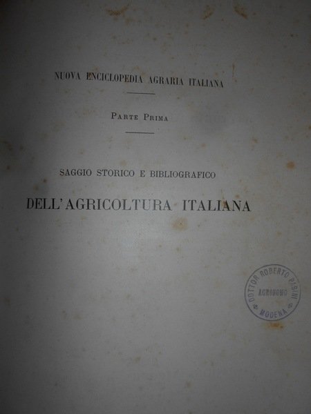 Saggio Storico e bibliografico Dell' Agricoltura Italiana dalle origini al 1900