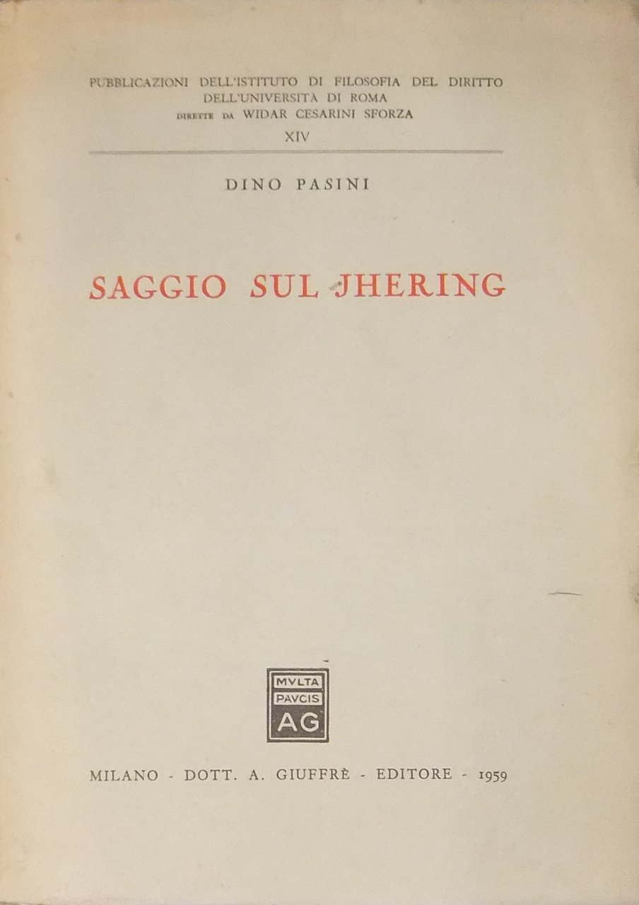 Saggio sul Jhering | Libri antichi e moderni | Pasini Dino