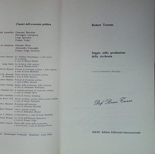 saggio sulla produzione della ricchezza | Libri antichi e moderni | torrens