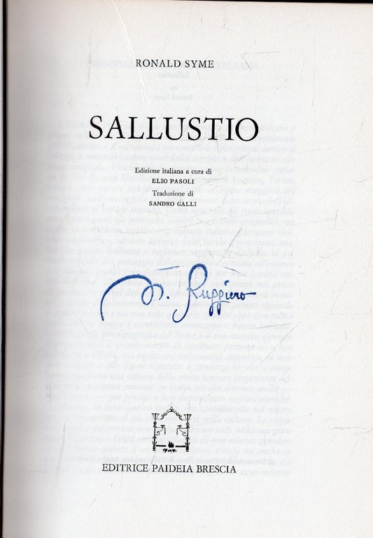 Sallustio | Libri antichi e moderni | Ronald Syme, ,Ronald Syme