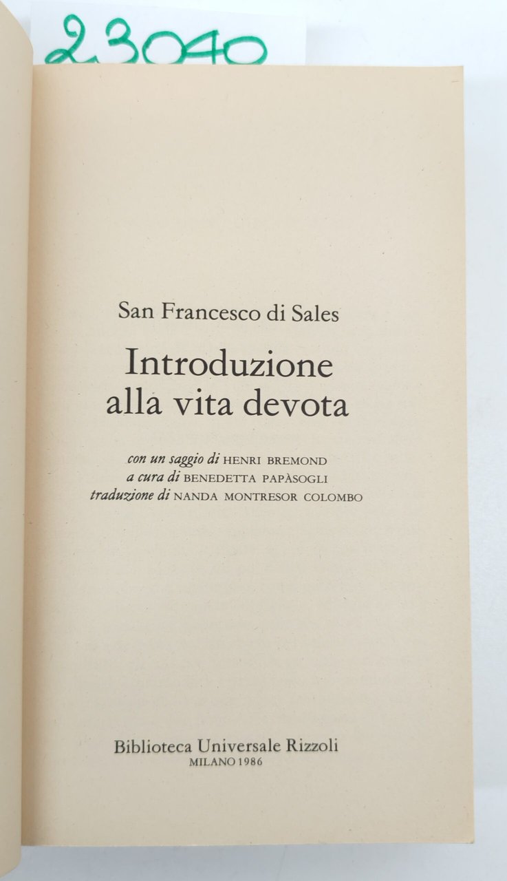 San Francesco di Sales Introduzione alla vita devota BUR Rizzoli 1° edizione 1986