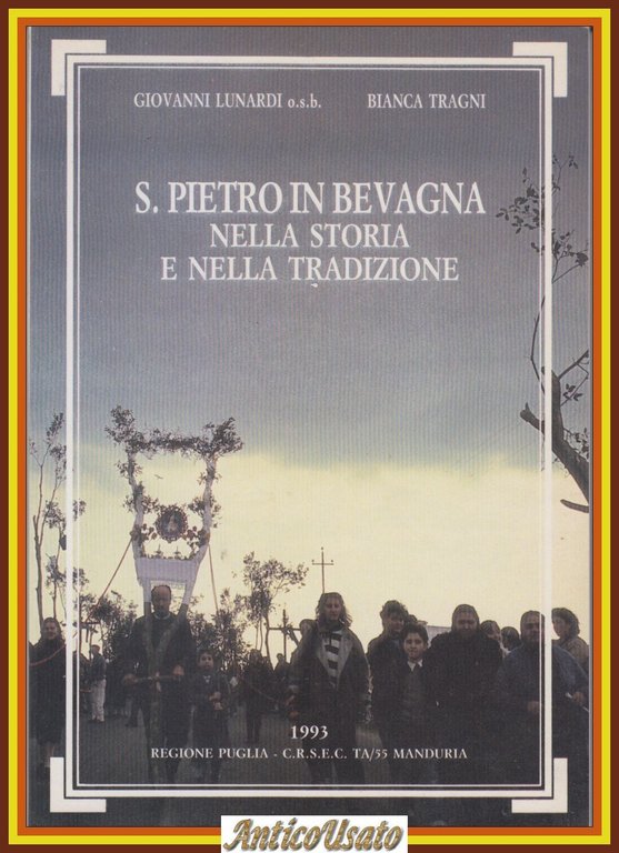 S. PIETRO IN BEVAGNA NELLA STORIA E NELLA TRADIZIONE di Giovanni Lunardi e Bianca Tragni. Regione Puglia Editore, 1993. 143 pagine. Illustrazioni in bianco e nero nel testo. Copertina editoriale in brossura. Stato di conservazione: OTTIMO