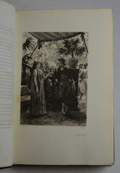 Cm. 23, pp. (8) 232 (2). Con testate, finalini, vignette e 10 belle tavole all'acquaforte fuori testo di Rejchan (ciascuna protetta da velina originale). Solida ed elegante legatura coeva in mezzo marocchino con punte. Dorso a nervi con titoli in oro e taglio di testa dorato. Legatura firmata Vauthrin. Esemplare marginoso, elegantemente stampato su carta forte ed in ottimo stato di conservazione.