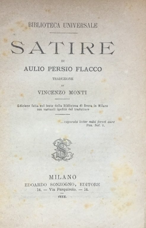 Satire | Libri antichi e moderni | Persio, Aulo Flacco