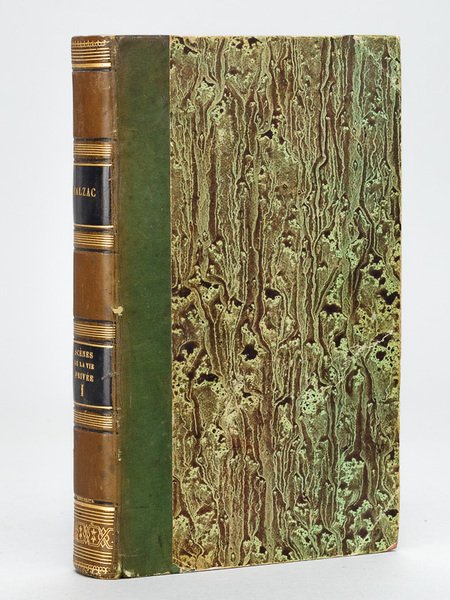 Nouvelle édition, revue et corrigée, 1 vol. in-12 reliure demi-veau vert de l'époque, dos lisse orné de faux nerfs, reliure signée de Kleinhans, Charpentier, Paris, 1839, 2 ff., frontispice, 433 pp. et 1 f. Charmant exemplaire de la première édition au format in-12, revue et corrigée par Balzac, au texte très remanié, dans une reliure attribuable à Kleinhans (un volume en reliure identique, de la même série, est signé par le relieur). relieur parisien ayant exercé de 1815 à 1849, Kleinhans fut l'élève de Niedrée, et eut lui-même pour élève Trautz. Bon exemplaire (tome premier seul)