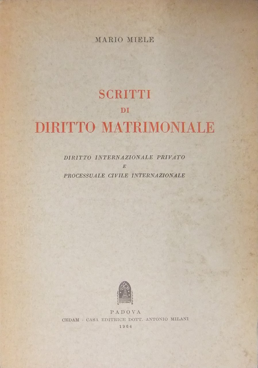 Scritti di diritto matrimoniale. Diritto internazionale privato e processuale civile internazionale | Libri antichi e moderni | Miele Mario