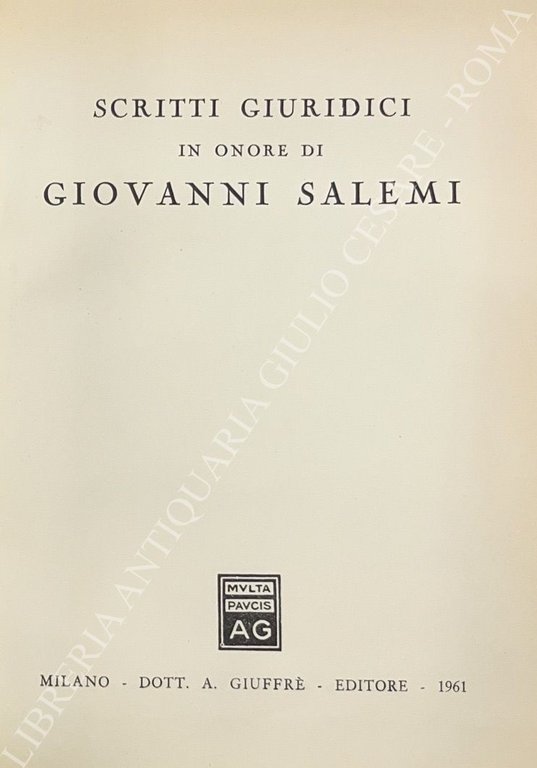 Scritti giuridici in onore di Giovanni Salemi | Libri antichi e moderni | Autori Vari