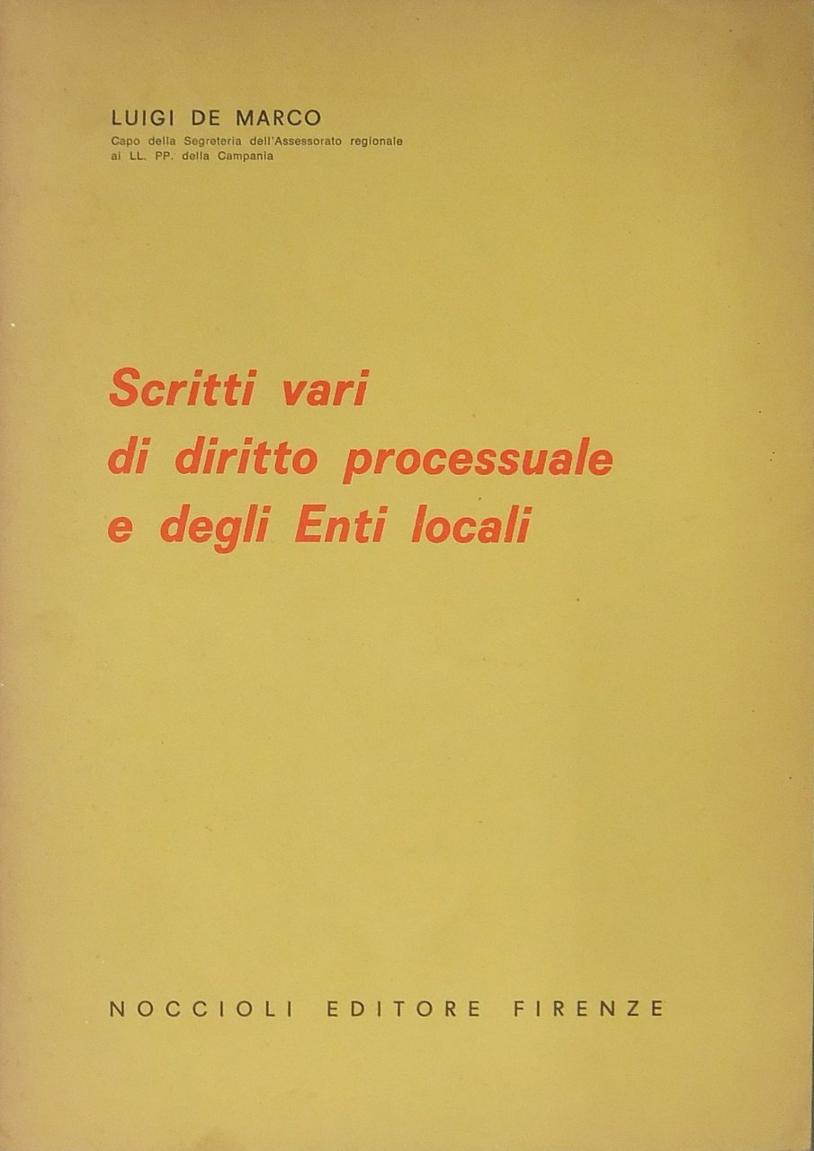 Scritti vari di diritto processuale e degli enti locali | Libri antichi e moderni | De Marco Luigi