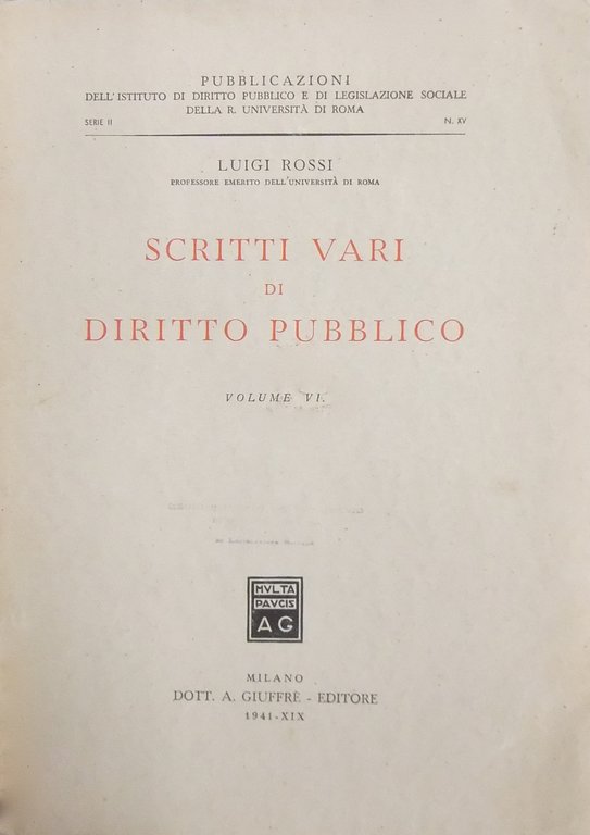 Scritti vari di diritto pubblico. Vol. VI | Libri antichi e moderni | Rossi Luigi