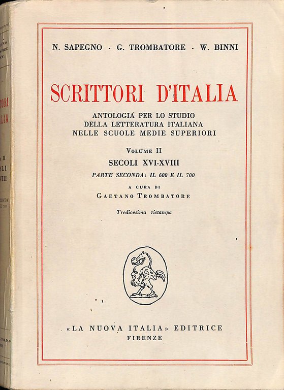 Scrittori d'Italia. Antologia per lo studio della letteratura italiana nelle scuole medie superiori. Volume II, secoli XVI-XVIII. Parte seconda. Il 600 e il 700 | Libri antichi e moderni | Sapegno N., Trombatore G., Binni W.